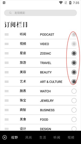 2、订阅你想看的栏目