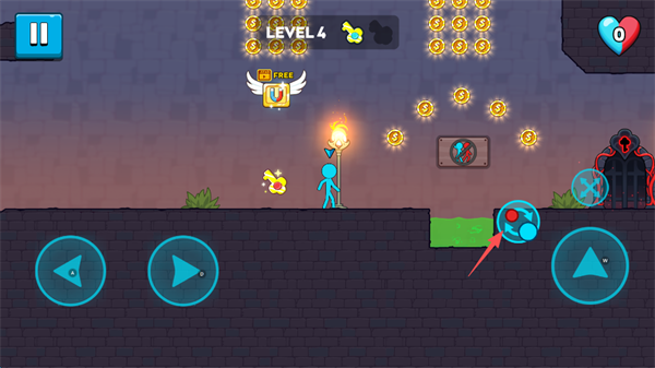4、同样,火属性的火柴人是可以直接趟过岩浆的。